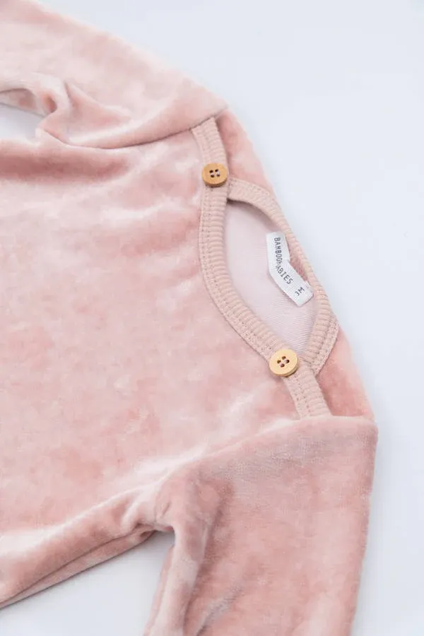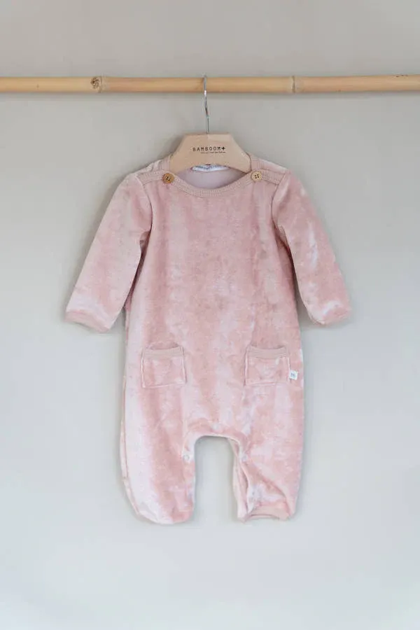 Bamboom - aksamitny pajacyk niemowlęcy bez stópek jasnoróżowy