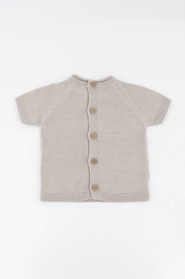 Bamboom - dzianinowa bluzka niemowlęca z krótkim rękawem zapinana na plecach kamelowa