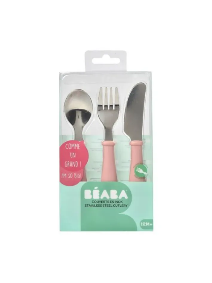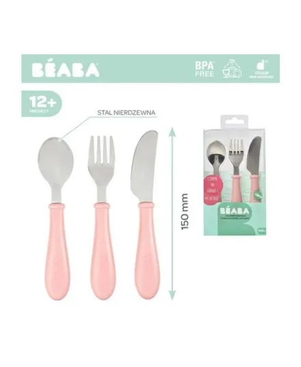 Beaba - komplet sztućców dla dzieci ze stali nierdzewnej 12 m+ Old Pink