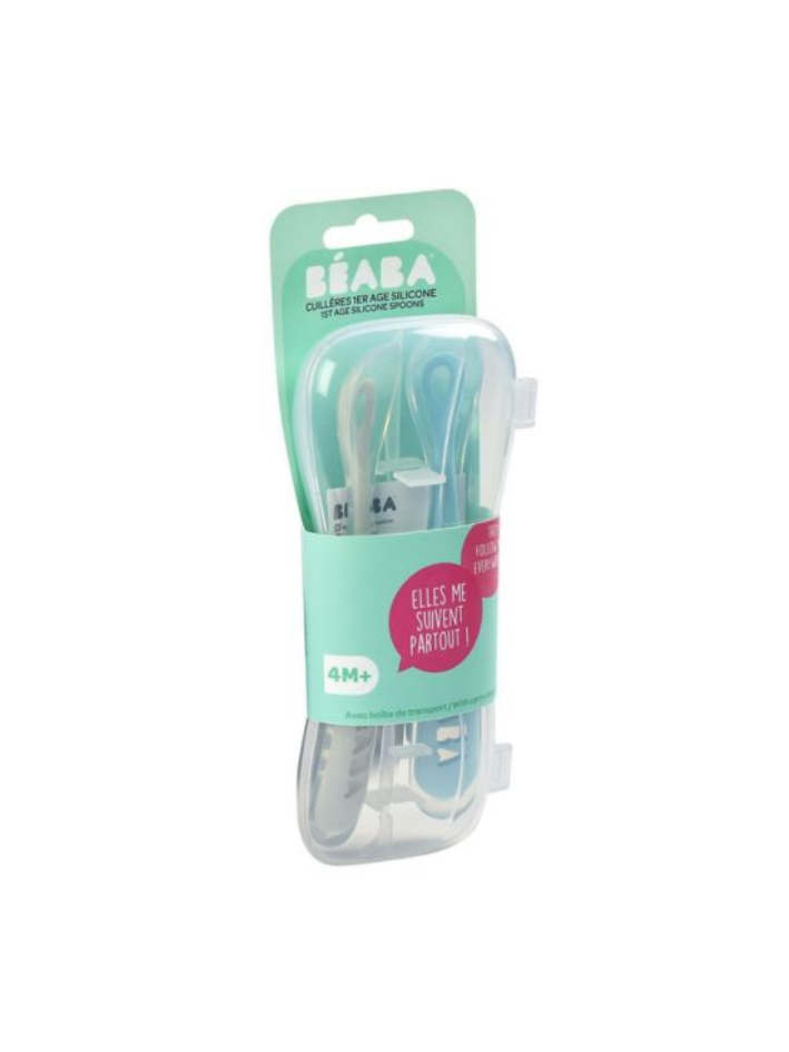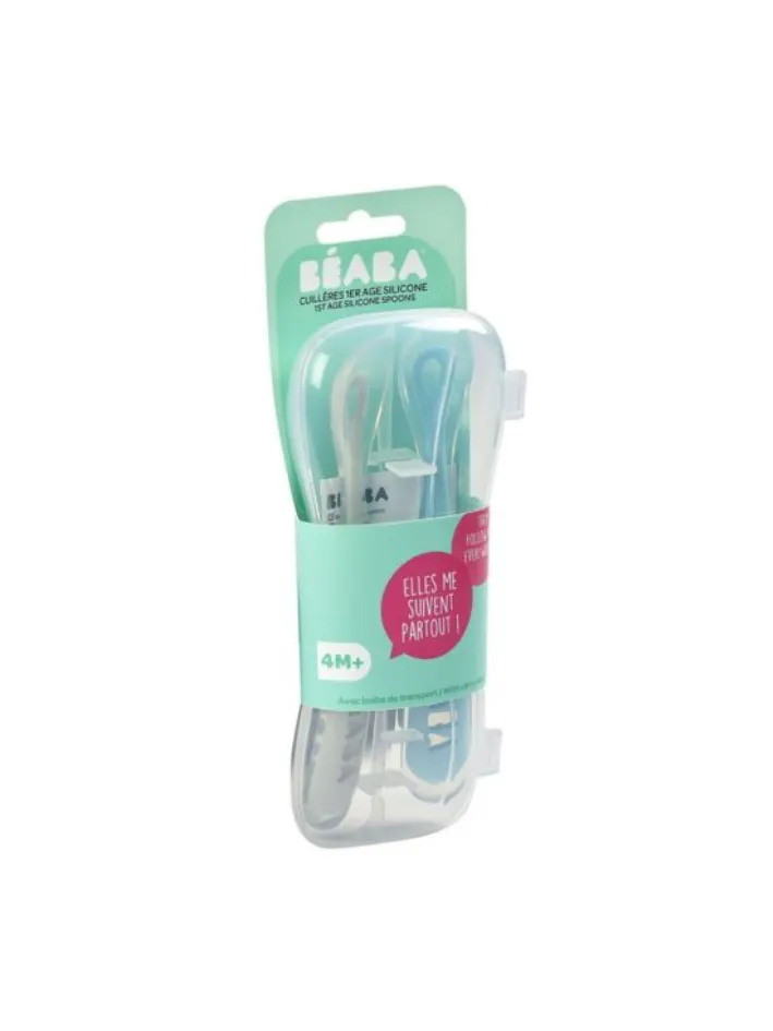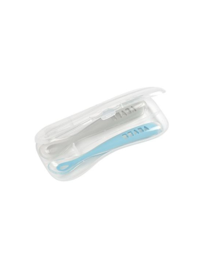 Beaba - zestaw 2 Łyżeczek silikonowych w podróżnym etui 4m+ (2 szt.) Windy Blue