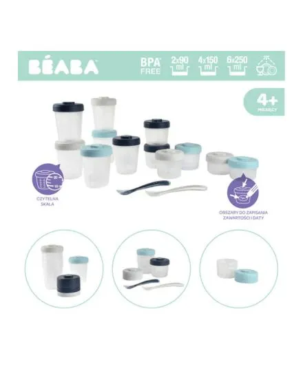 Beaba - zestaw słoiczków Clip 12 sztuk (2x90ml, 4x150ml, 6x250ml) + 2 łyżeczki