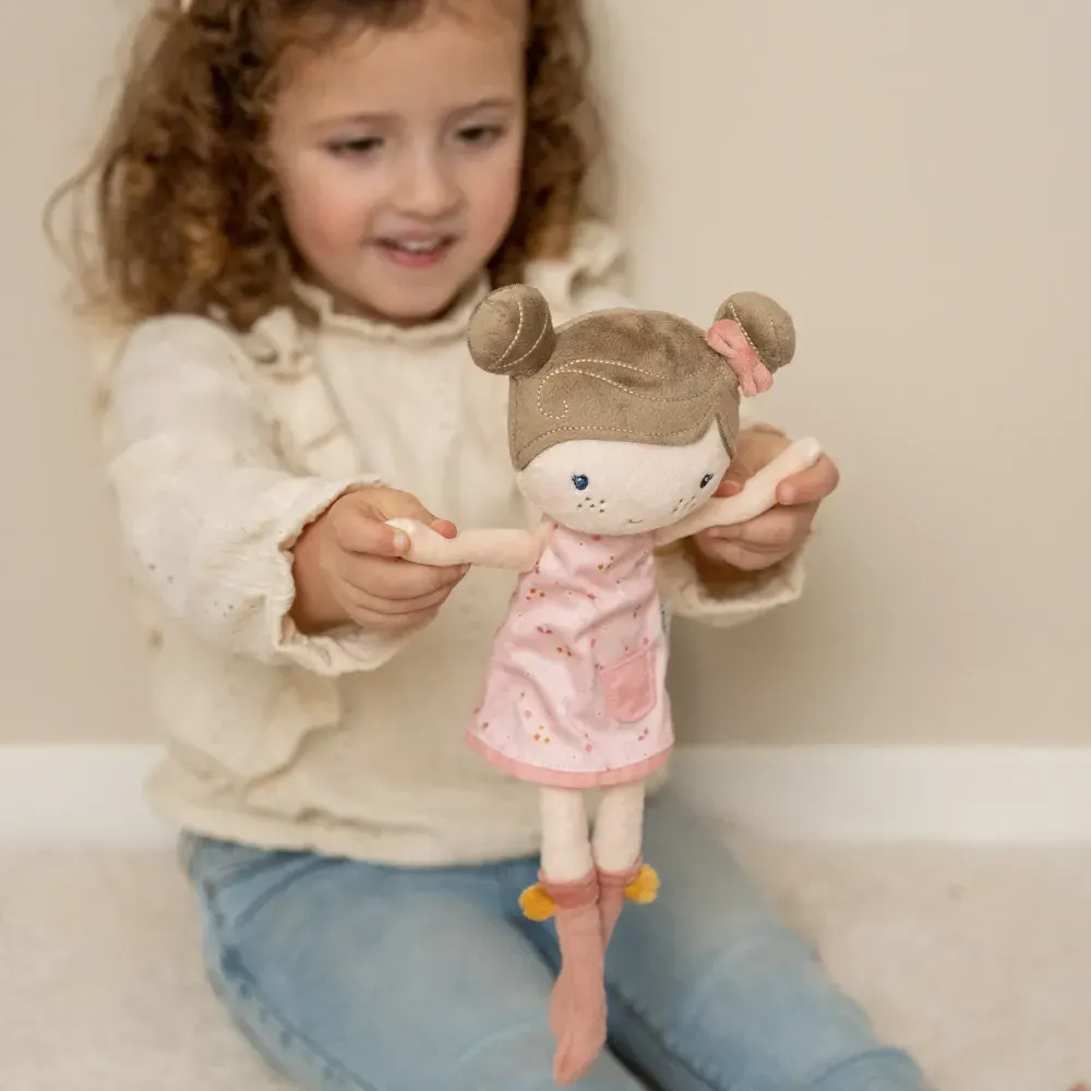 - Little Dutch - laleczka SOPHIA 35 cm - to wyjątkowa przytulanka, która z pewnością stanie się ulubioną towarzyszką zabaw i snu każdego malucha. Wykonana z miękkiego, przyjemnego w dotyku materiału, Sophia ma dwa urocze warkoczyki, sukienkę w groszki oraz miękkie buciki. W rączkach trzyma małpkę – swoją najlepszą przyjaciółkę, co dodaje jej jeszcze więcej uroku.