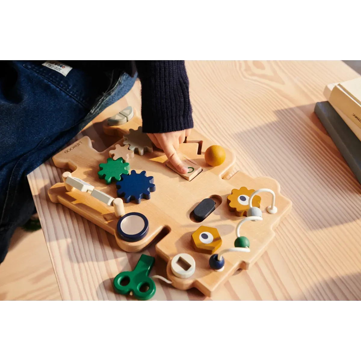- Lilliputiens - drewniana tablica manipulacyjna Farma - ta interaktywna zabawka w kształcie domku, która rozwija małą motorykę, koordynację ręka-oko oraz zmysły dziecka. Wykonana z bezpiecznych materiałów, łączy drewno z tkaninami o różnych fakturach.