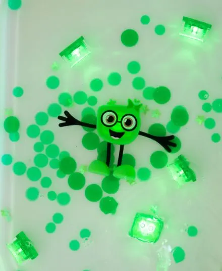 Zabawki świecące w wodzie to często niewielkie figurki lub kule LED, które aktywują światło po kontakcie z wodą. Ich kolorowe migotanie działa uspokajająco i intrygująco zarazem – świetnie sprawdzają się podczas wieczornej kąpieli, tworząc relaksującą atmosferę. Przykładem są fantastyczne zabawki do wanny Glo Pals, np. Glo Pals - zestaw kostek sensorycznych do kąpieliczy teżGlo Pals - zabawka do kąpieli Pippa z dwiema kostkami sensorycznymi świecącymi w wodzie. Seria Glo Pals to cała kolekcja zabawek, którą możesz skompletować.