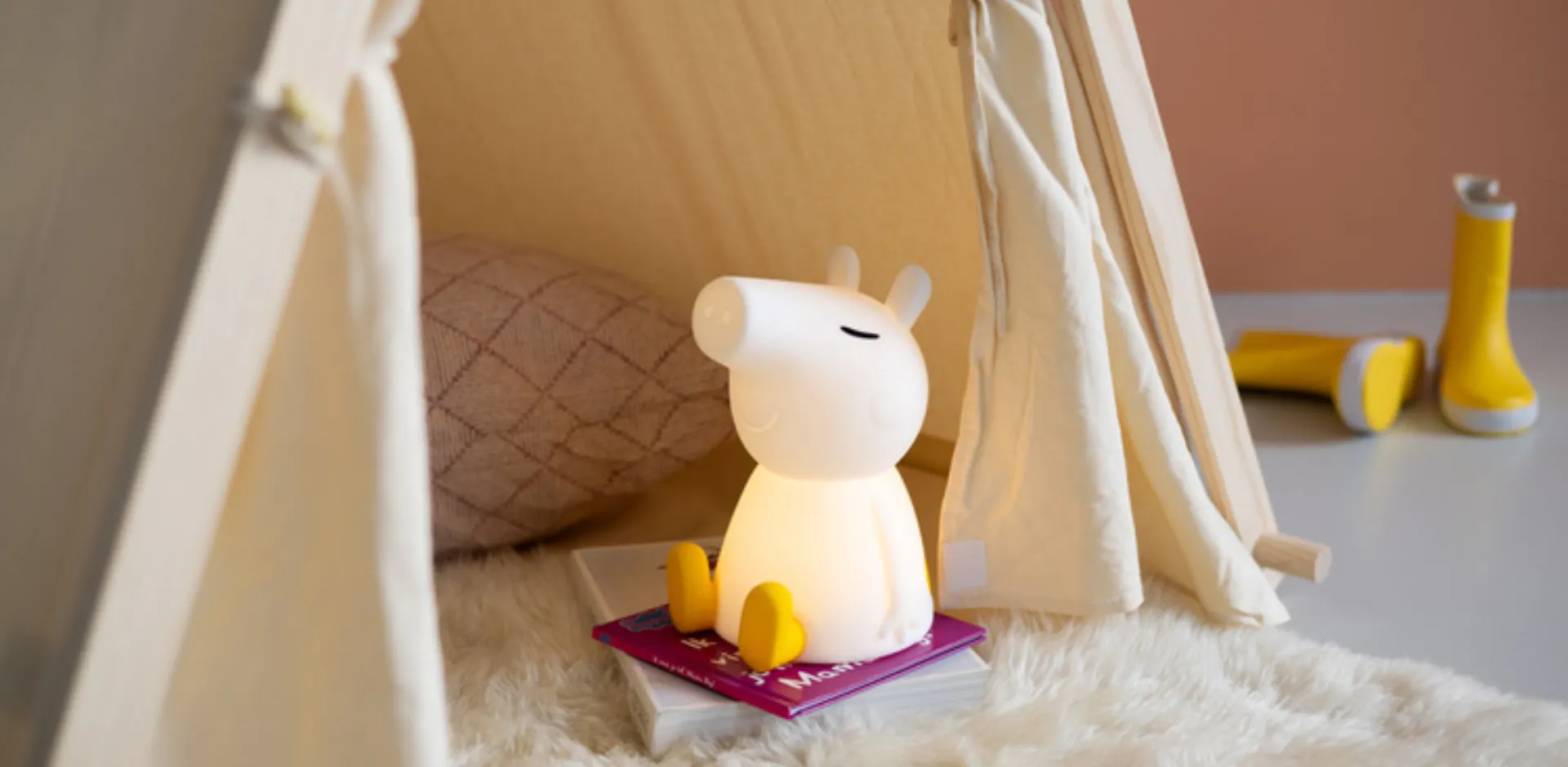 Lampka w kształcie piłki, rakiety lub samolotu (np. Liewood - lampka silikonowa Helikopter Winston Night Light).