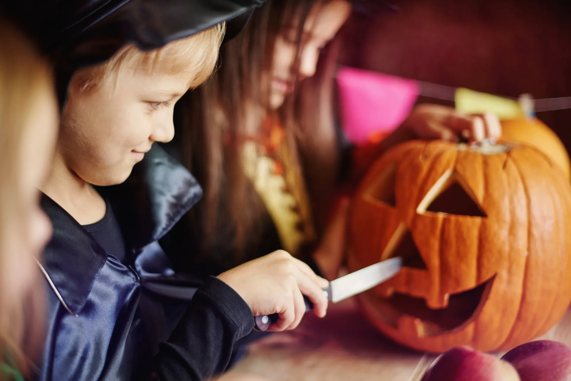 Wydrążanie dyni to istna sensoryczna zabawa! Wydrąż dynie, przygotuj śmieszne miny lub pokażcie, że dynie też potrafią mieć emocje! Spędźcie miło czas, przygotowując radosne i podekscytowane dynie. Do środka dyni można włożyć światełka na baterię, które dodadzą dodatkowej atmosfery.