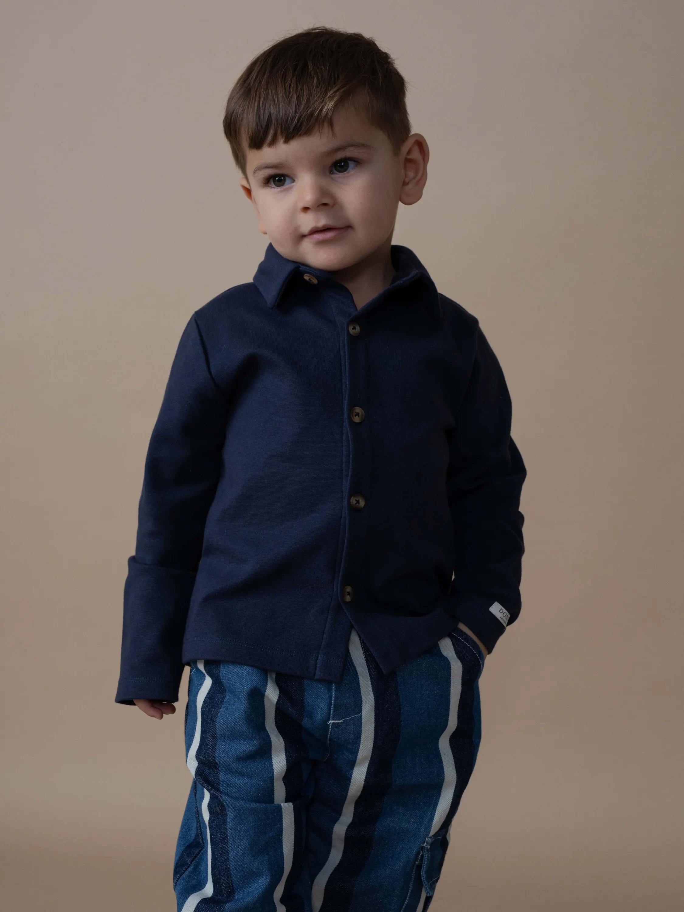 Jeśli chcesz prostszej, uniwersalnej bazy - dobrym rozwiązaniem jest body z długim rękawem i kołnierzykiem (np. od Konges Sløjd) - miękkie, przewiewne i delikatne dla skóry niemowlęcia, a jednocześnie eleganckie, bo wyglądające jak biała koszula.