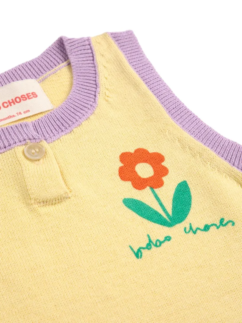 BOBO CHOSES - dzianinowy top T-shirt Flower Knitted z kwiatem beige beżowy