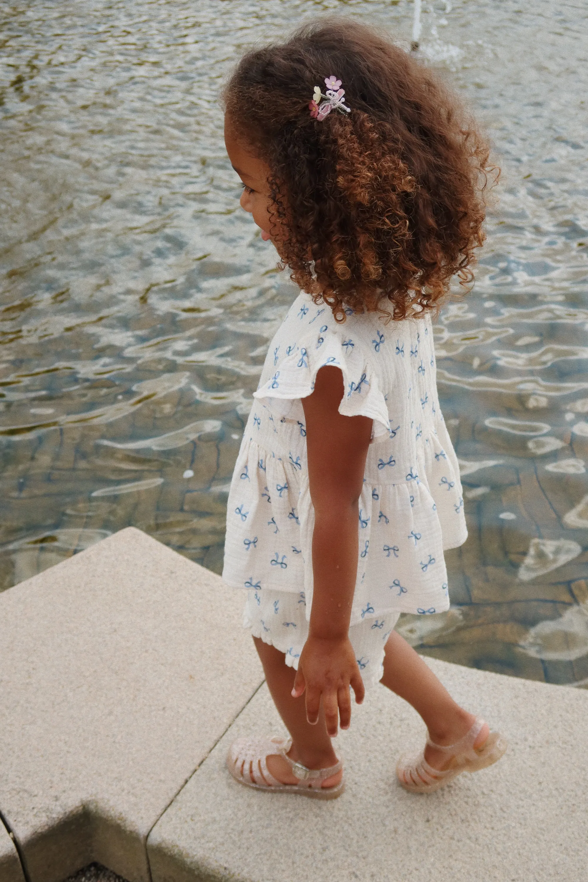 Konges Sløjd - szorty dziewczęce z muślinu Coco Shorts GOTS Bow BleuKonges Sløjd - szorty dziewczęce z muślinu Coco Shorts GOTS Bow Bleu