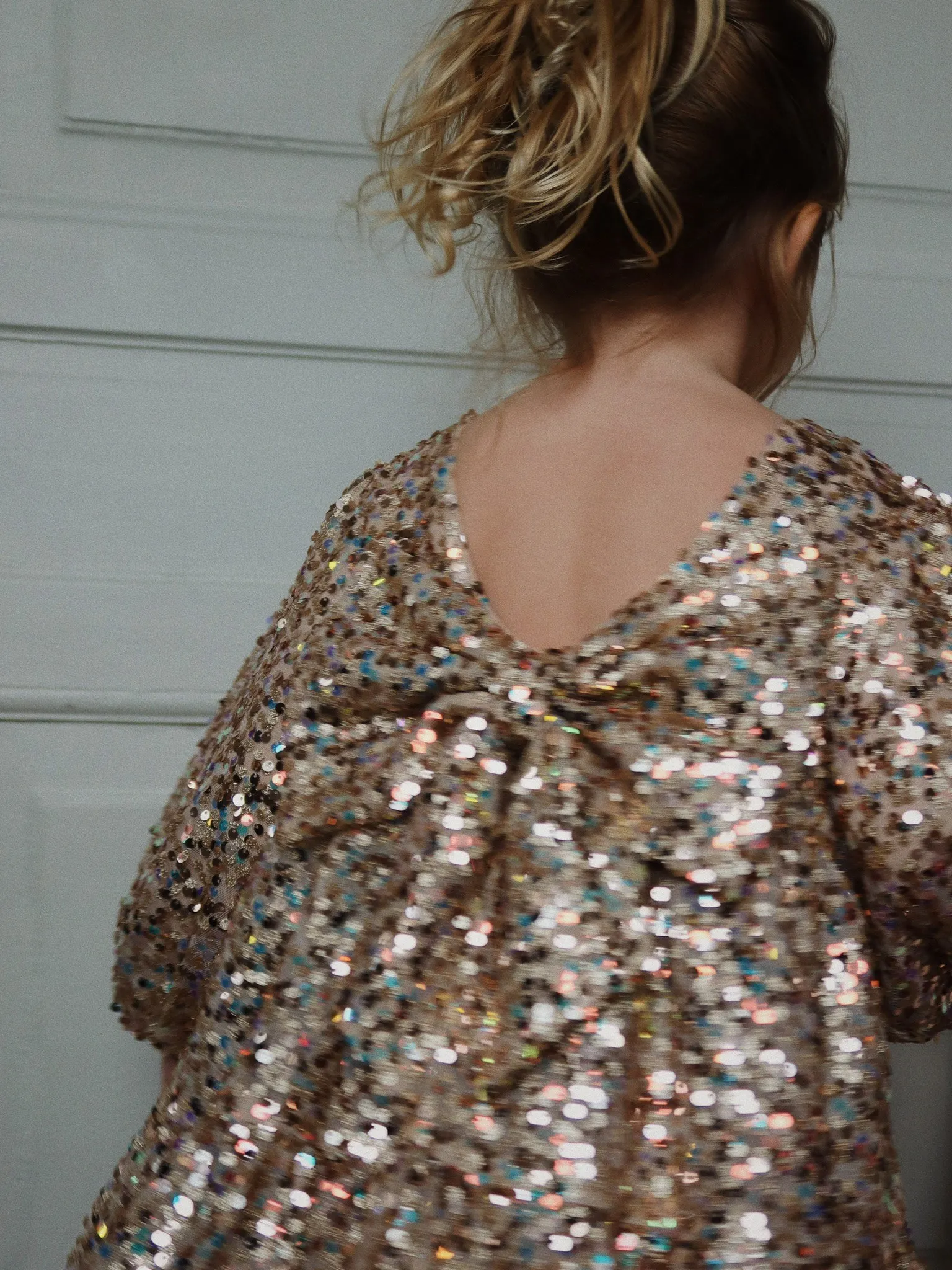 Konges Sløjd - sukienka Lila Sequins Bow Dress Gold Glitter