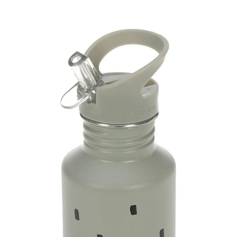 Lassig - bidon ze stali nierdzewnej z dodatkową zakrętką z ustnikiem 500 ml Happy Prints oliwkowy