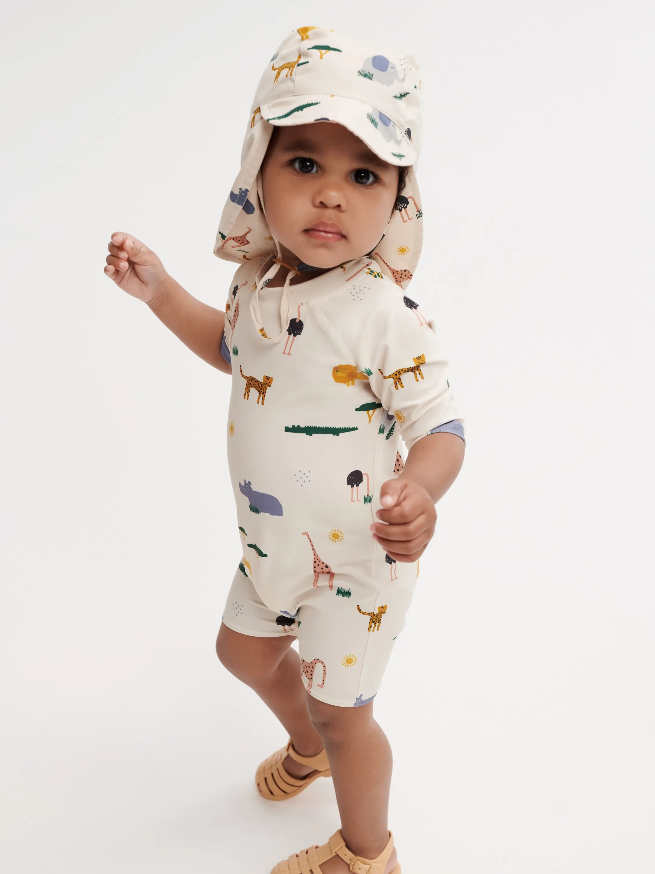 Liewood - kombinezon kąpielowy na krótki rękaw UV Thor Baby safari sandy mix