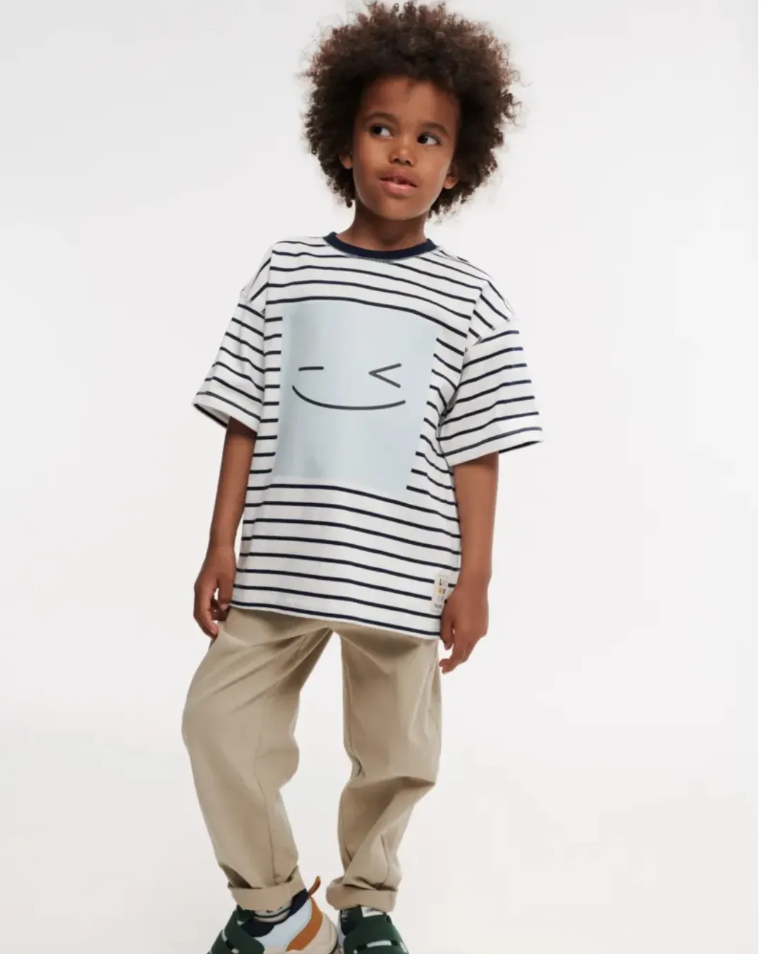 Liewood - koszulka T-shirt z krótkim rękawem w paski Tyler Placement Smiley Stripe classic navy creme de la creme