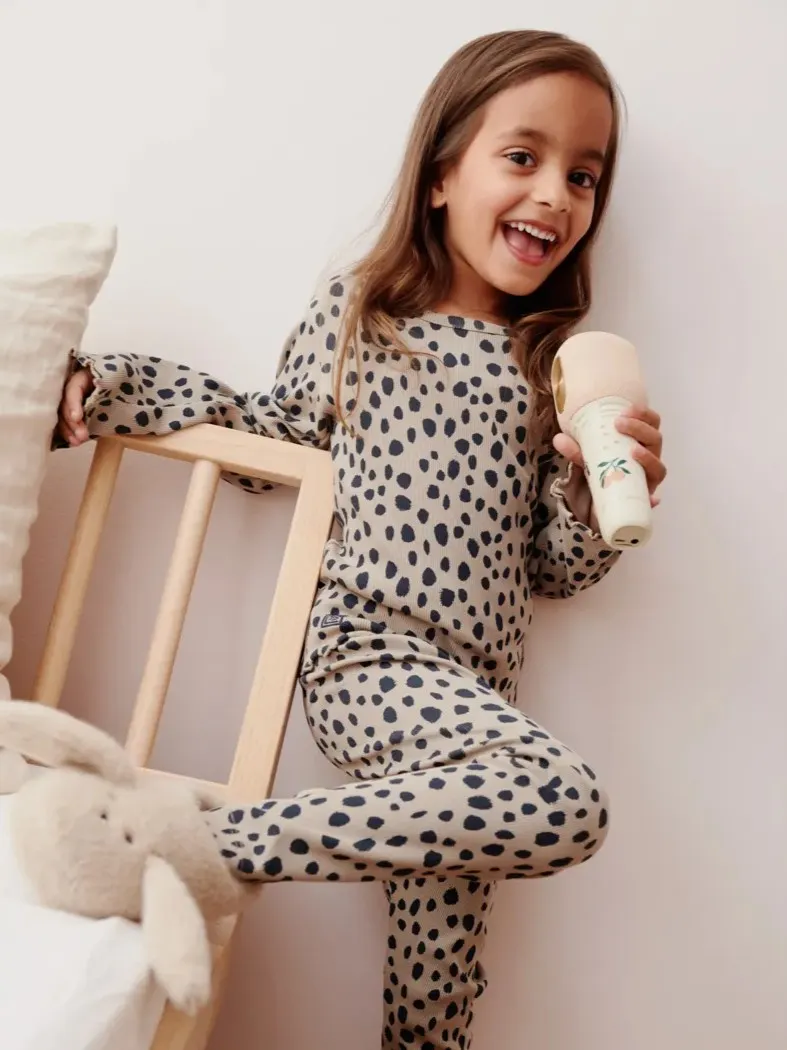 Liewood - prążkowana koszulka z długim rękawem Nieve Printed Leo spots / Mist