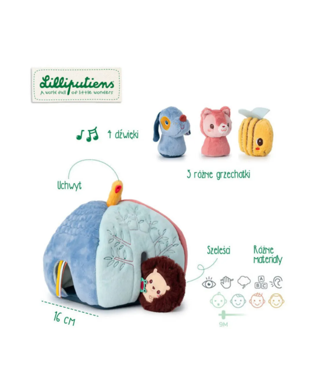 Lilliputiens - domek aktywizujący z grzechotkami Piesek Jules 9 m+