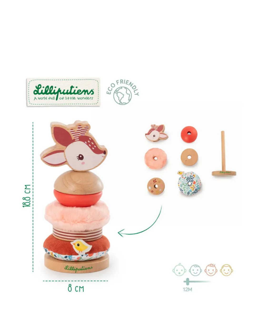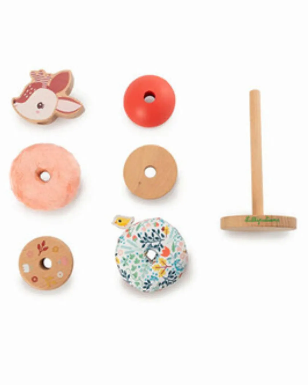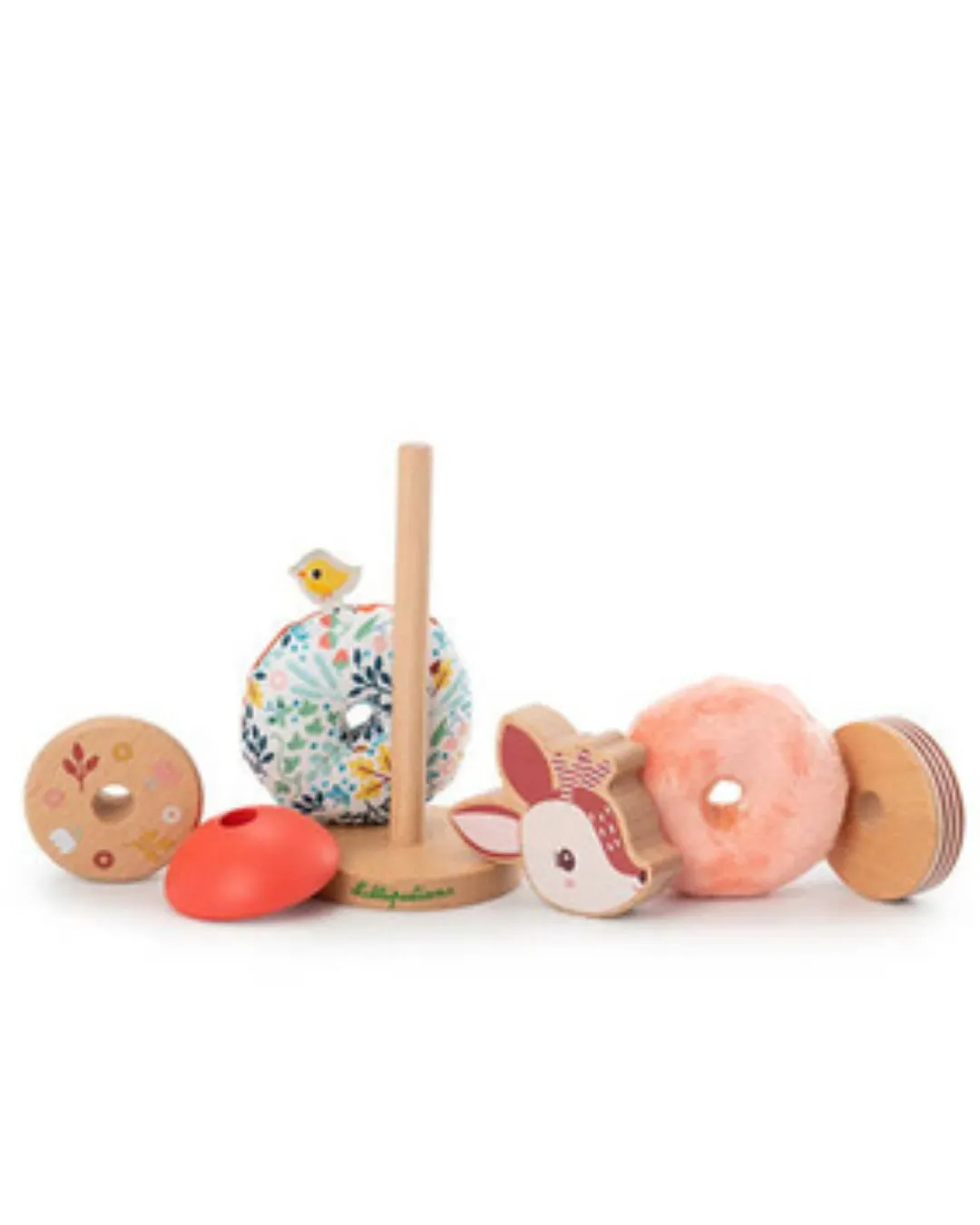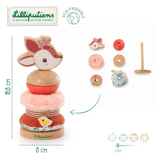 Lilliputiens - drewniana układanka piramida z miękkimi elementami Sarenka Stella 12 m+