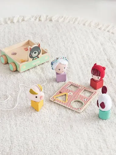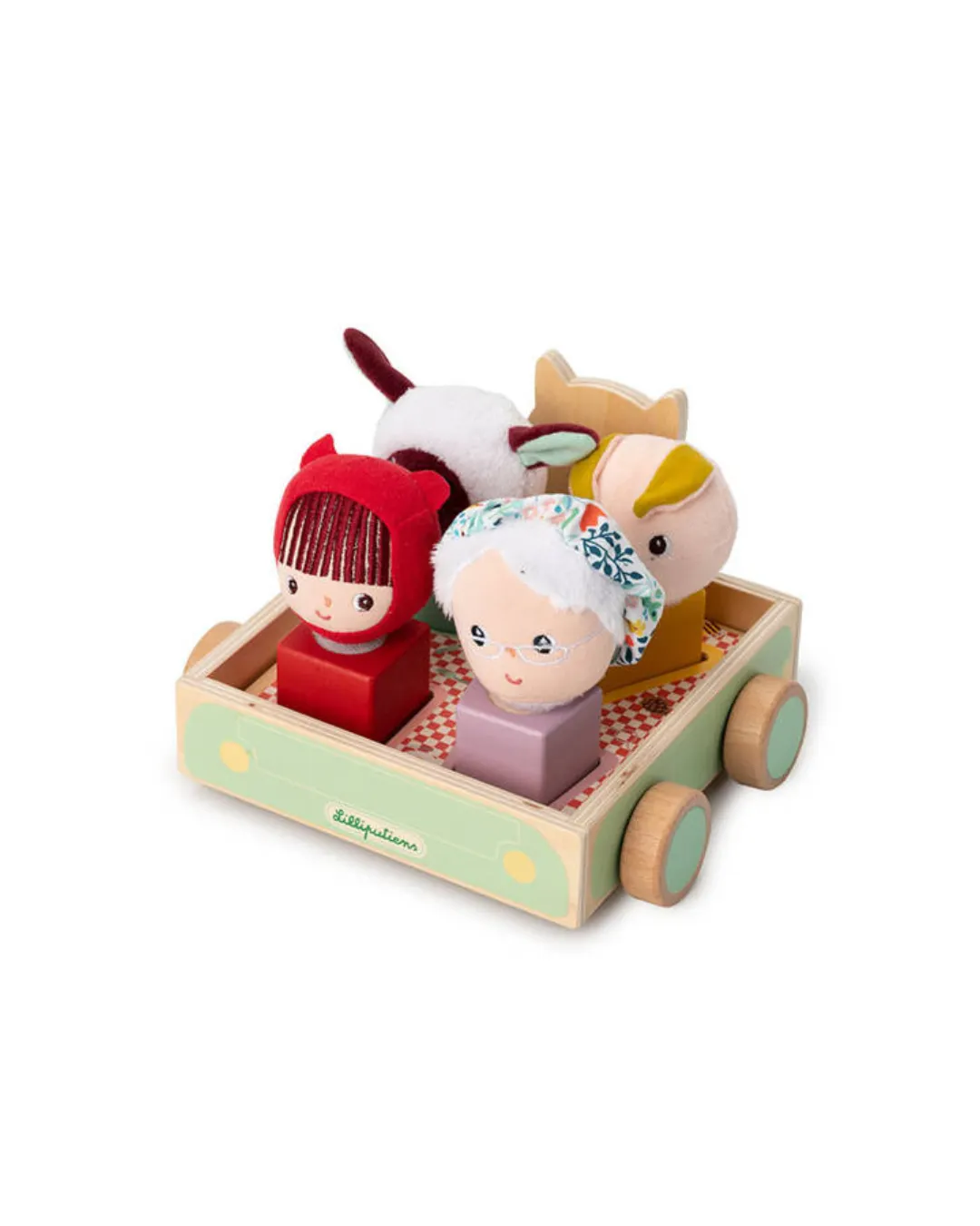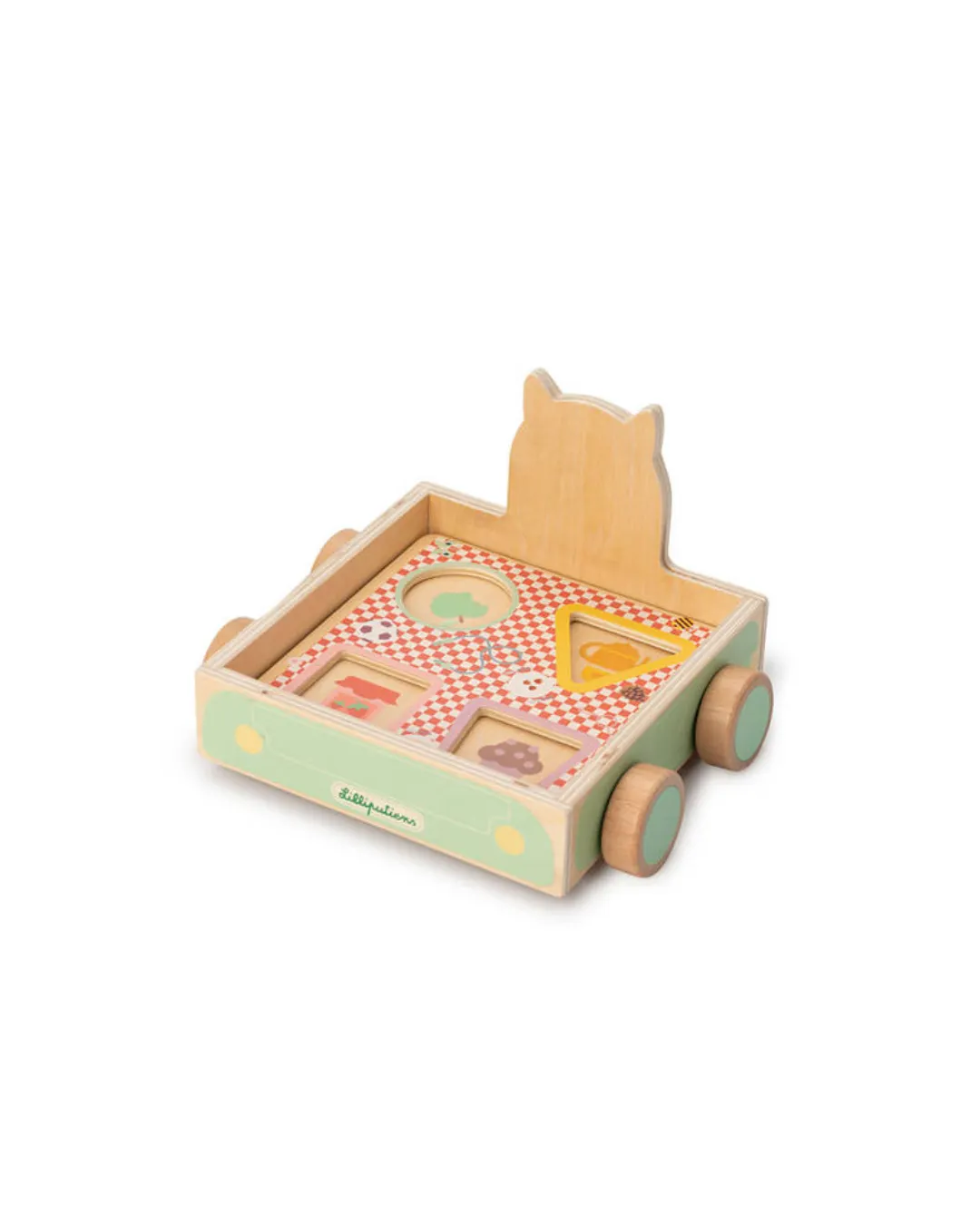 Lilliputiens - drewniany wózek do ciągnięcia dla dzieci z sorterem Wilk Louis