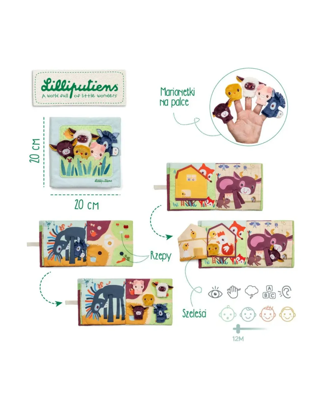 Lilliputiens - książeczka aktywizująca z mini-pacynkami Farma 12m+