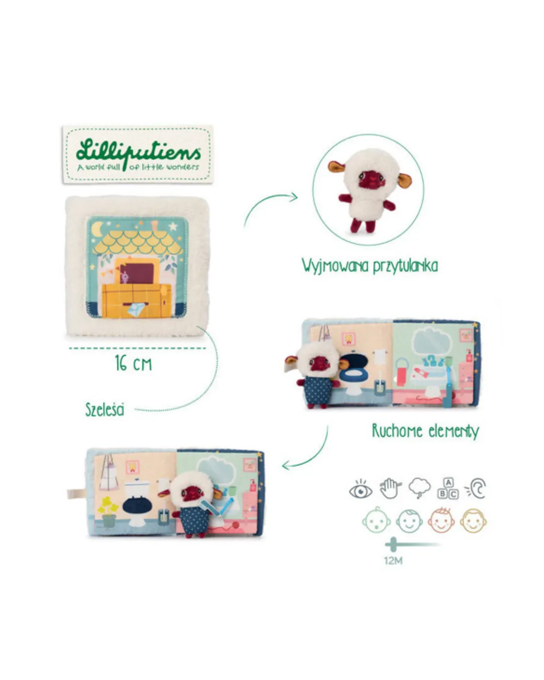 Lilliputiens - książeczka aktywizująca z pacynką na paluszek Dobranoc Owieczka Yvon 6m+