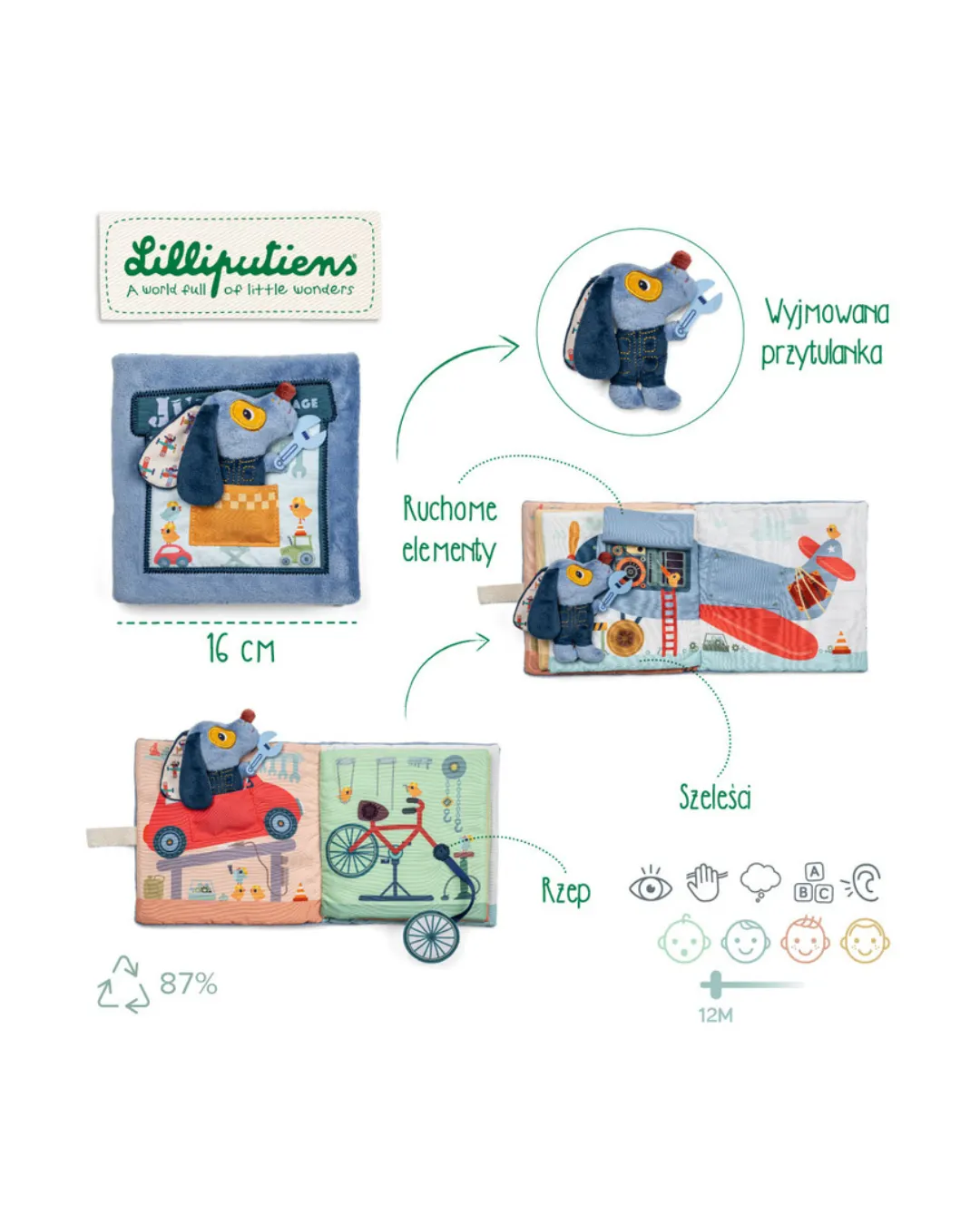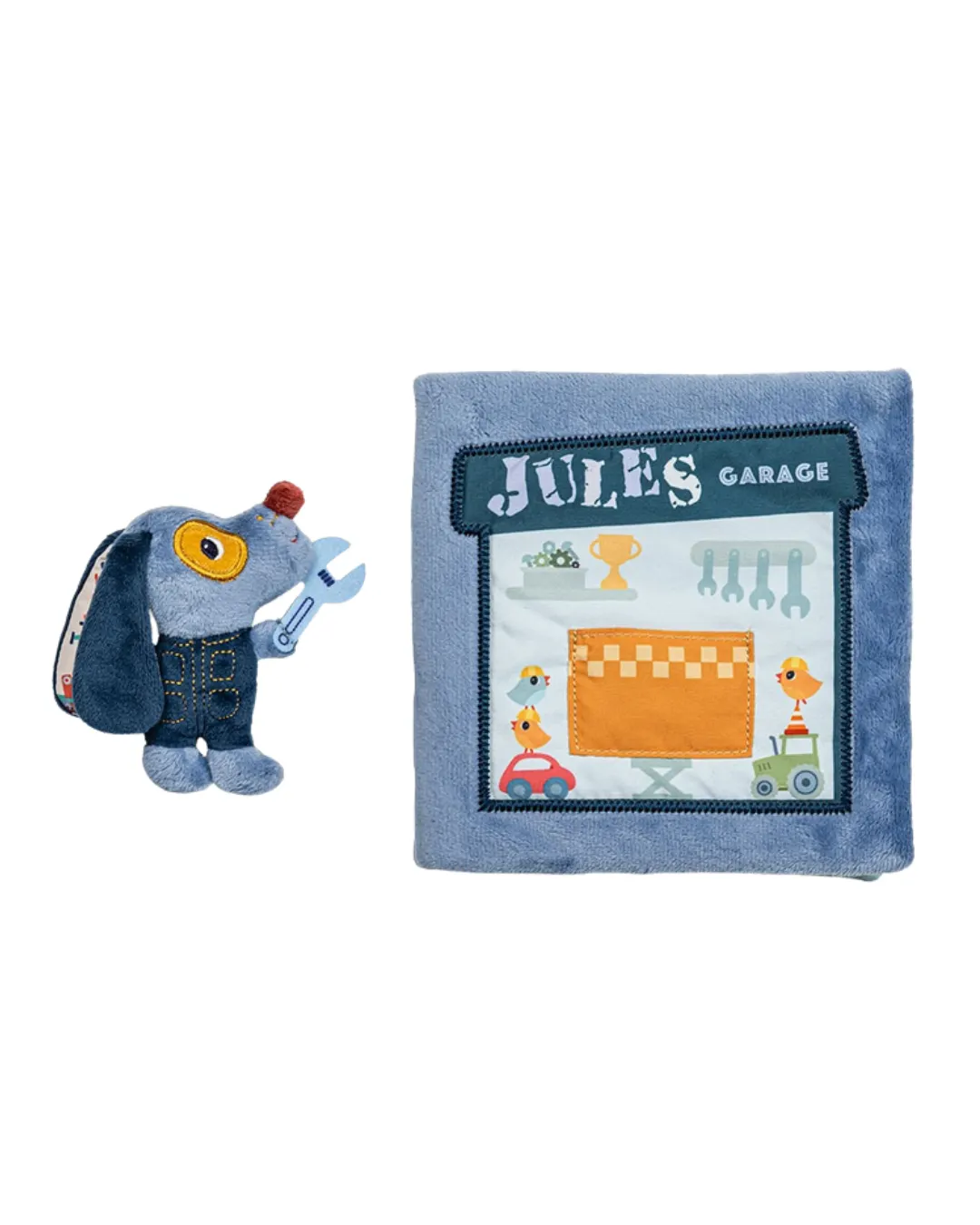 Lilliputiens - miękka książeczka aktywizująca "Garaż pieska Jules'a" 12m+