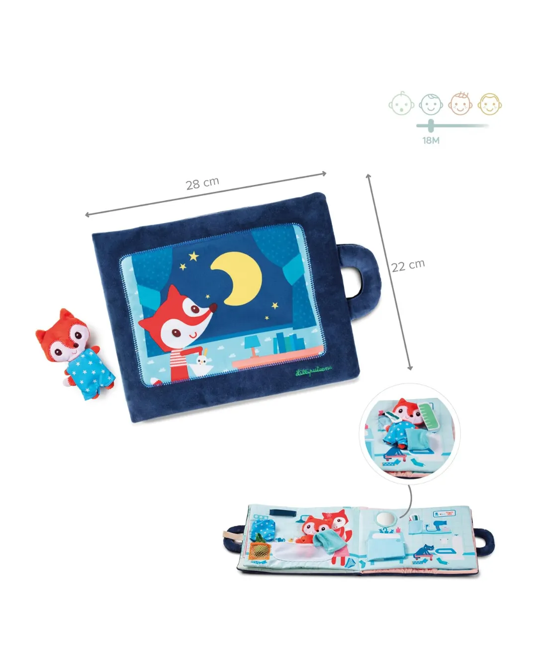 Lilliputiens - miękka książeczka aktywizująca z mini-przytulanką „Dobranoc, mały lisku”