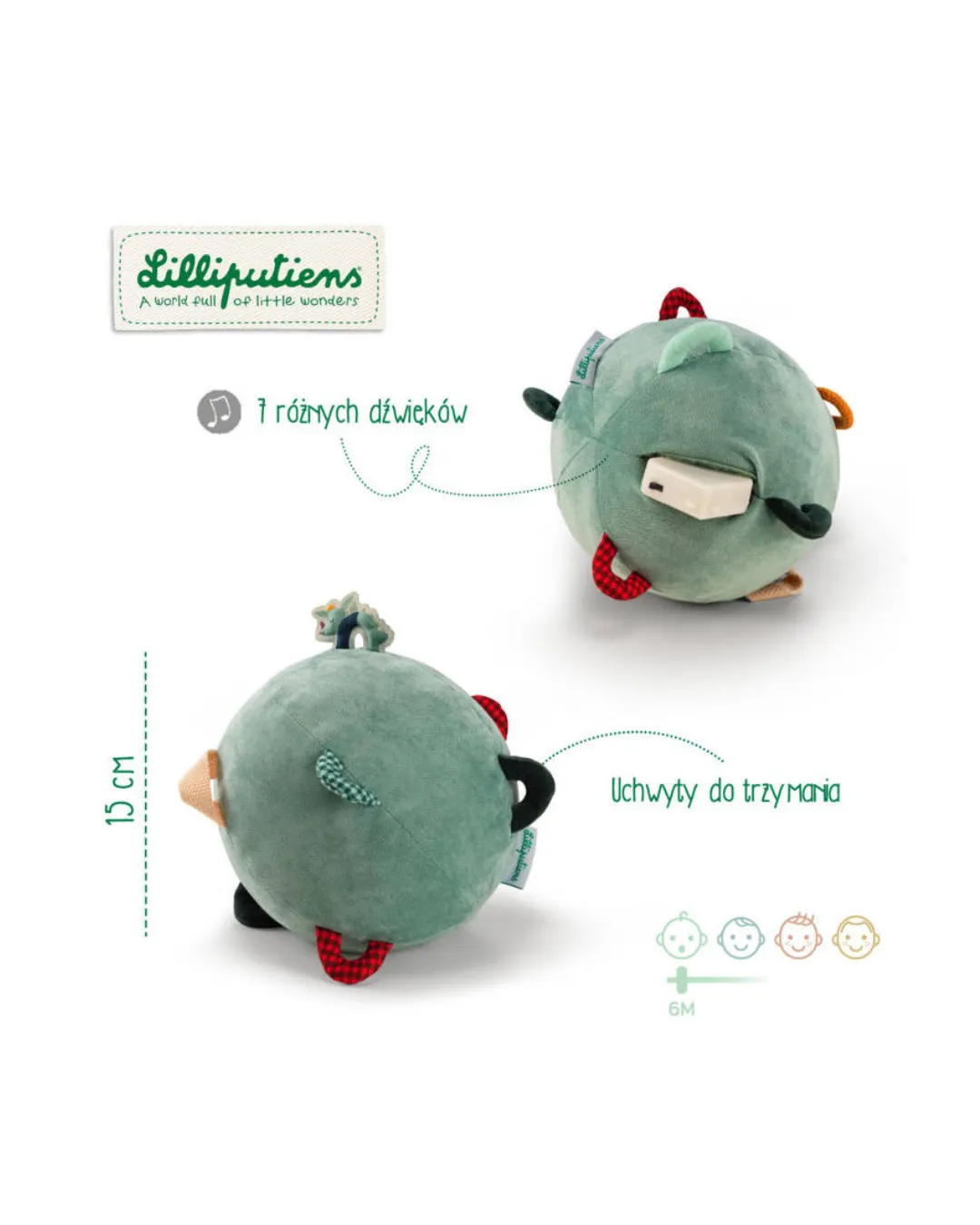 Lilliputiens - piłka sensoryczna z dźwiękami Smok Joe