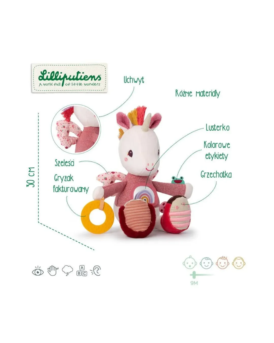 Lilliputiens - przytulanka aktywizująca wielofunkcyjna Jednorożec Lena 9 m+