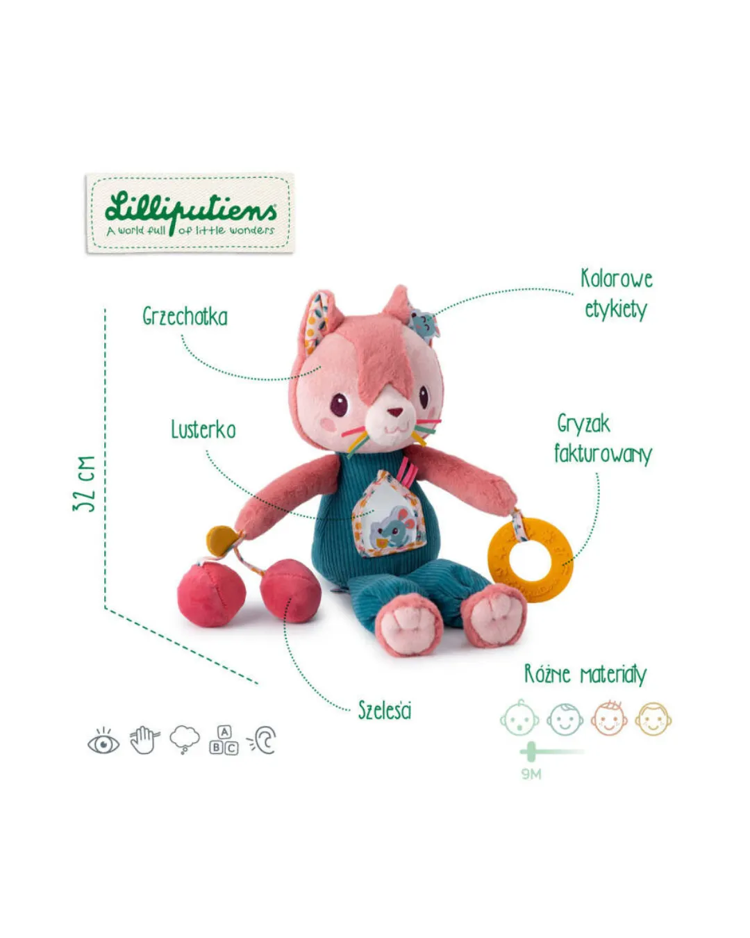 Lilliputiens - przytulanka aktywizująca wielofunkcyjna Kotka Jeanne 9 m+