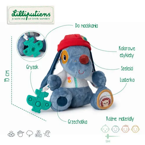 Lilliputiens - przytulanka aktywizująca wielofunkcyjna Piesek Jules 9 m+
