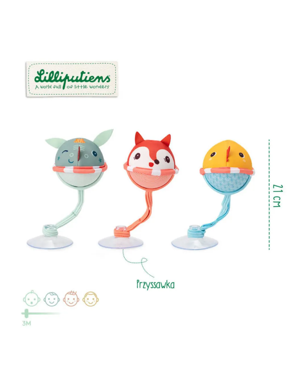 Lilliputiens - zestaw 3 piłeczki z przyssawkami do kąpieli Smok Joe
