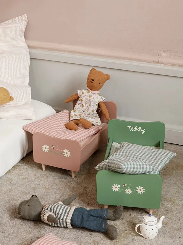 Maileg - drewniane łóżeczko Teddy Dad Dusty Green
