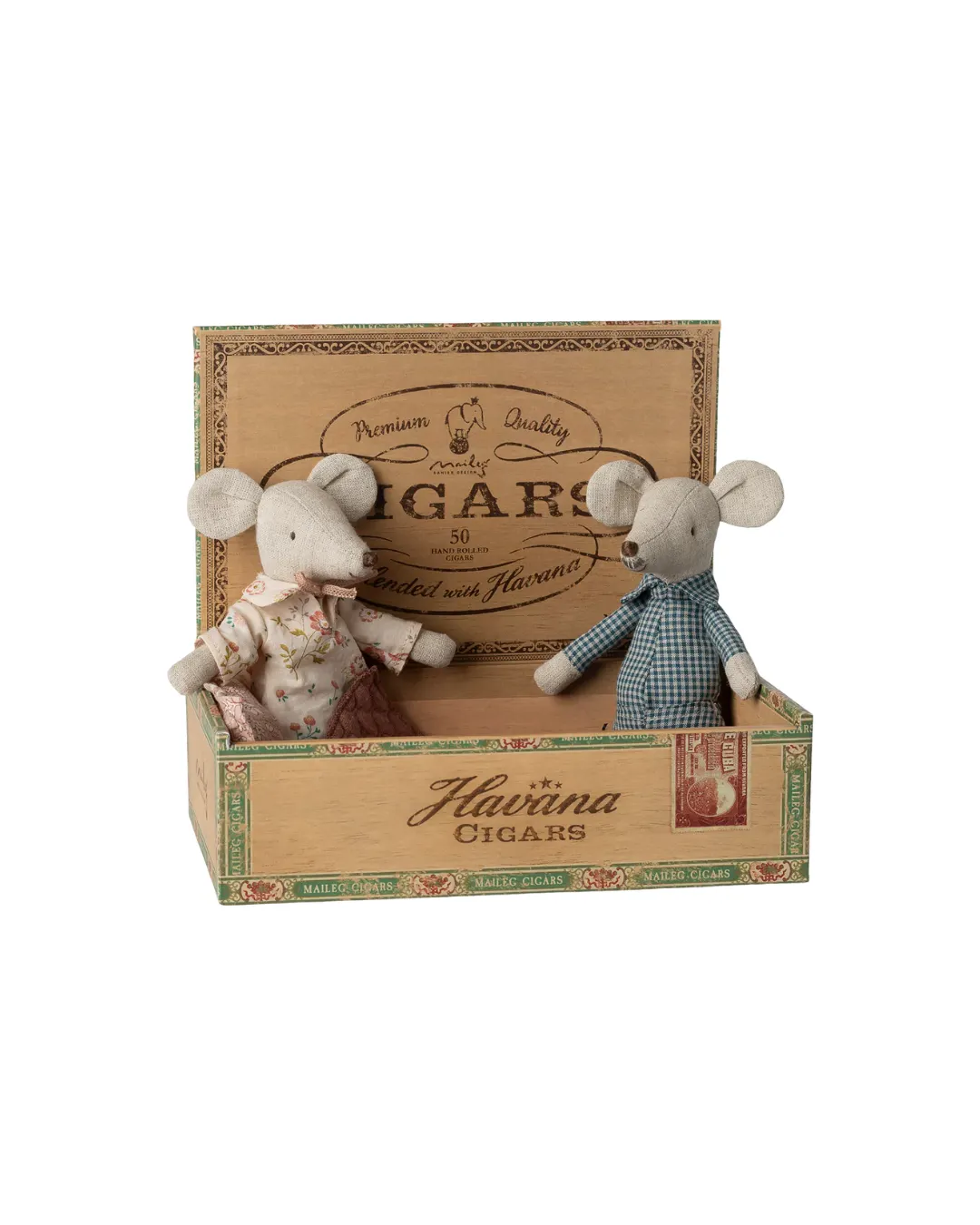 Maileg - myszki babcia i dziadek w pudełku po cygarach