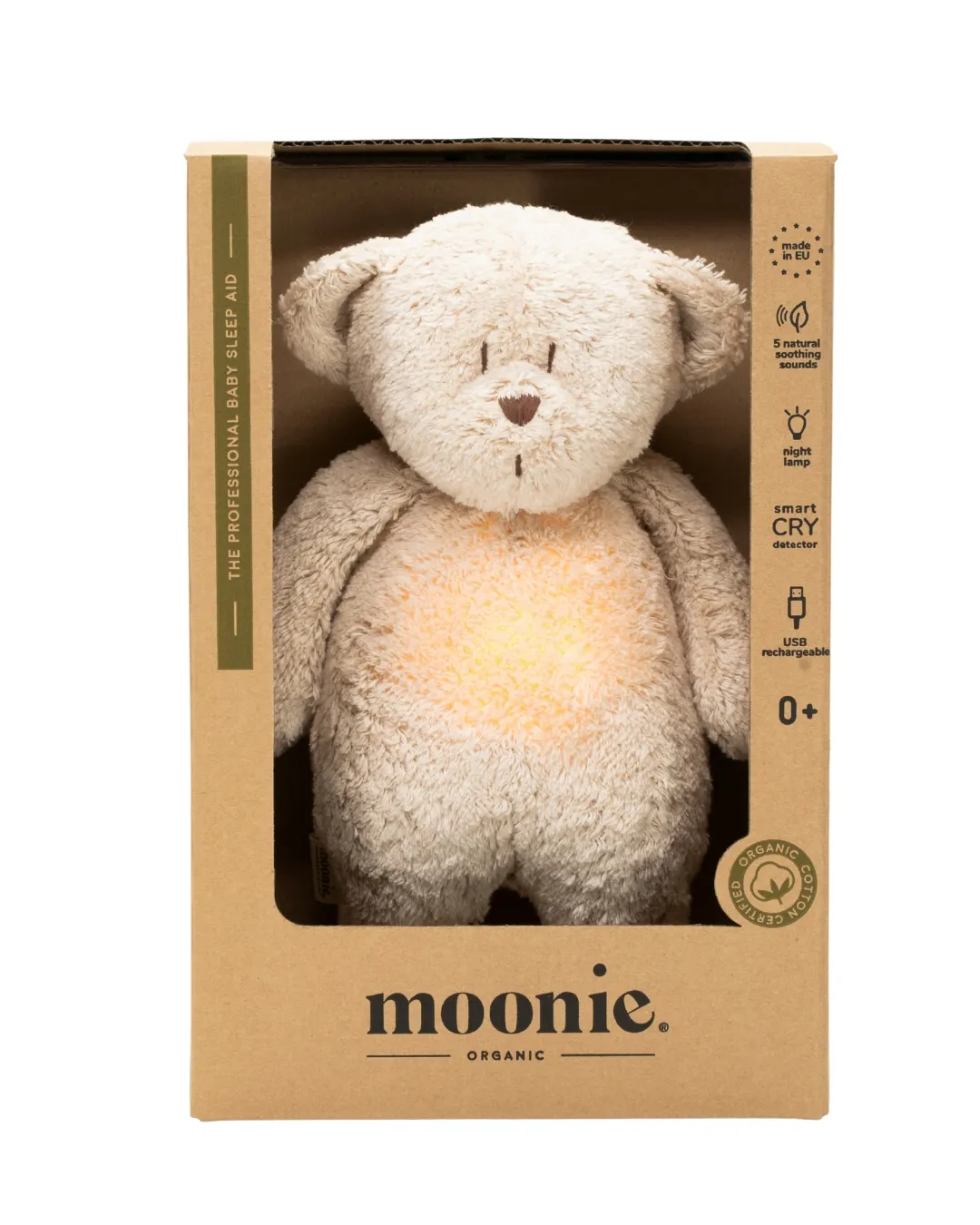 Moonie - szumiący miś organic z lampką Natur
