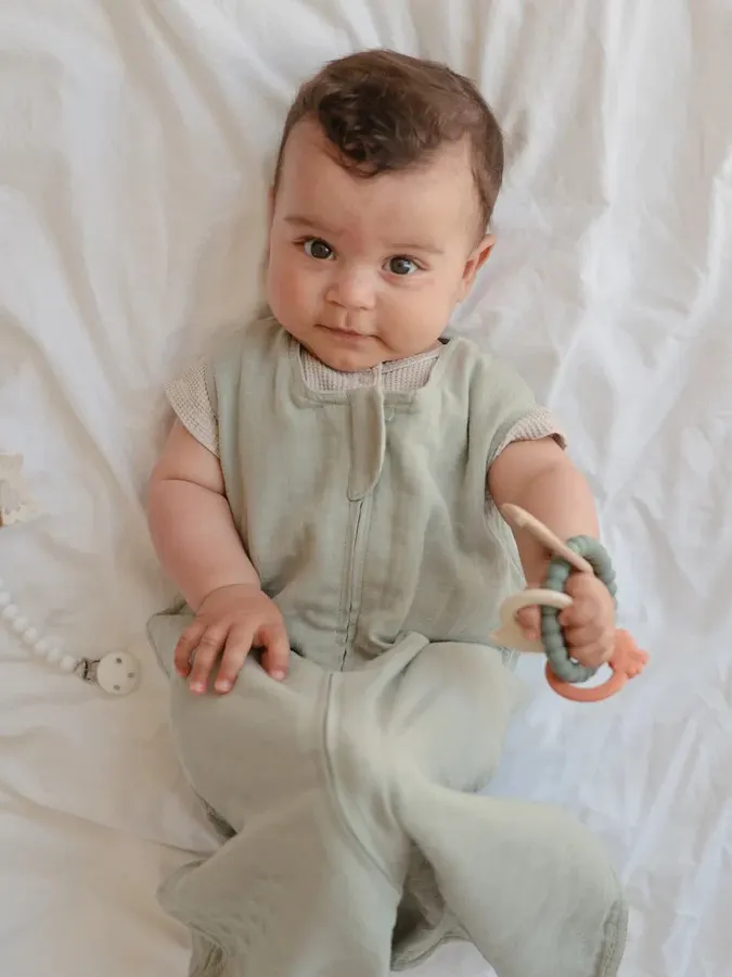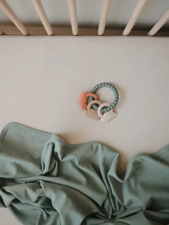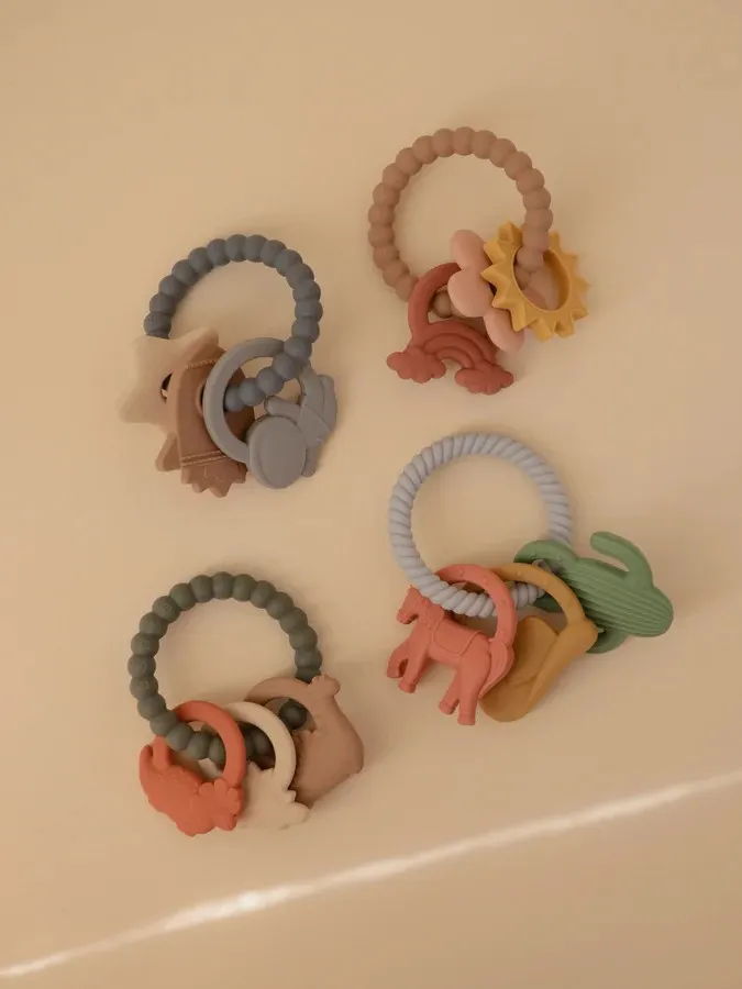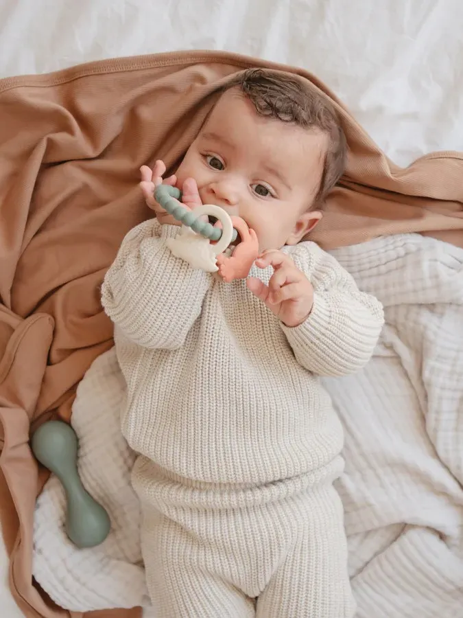 Mushie - gryzak silikonowy na kółku Dino