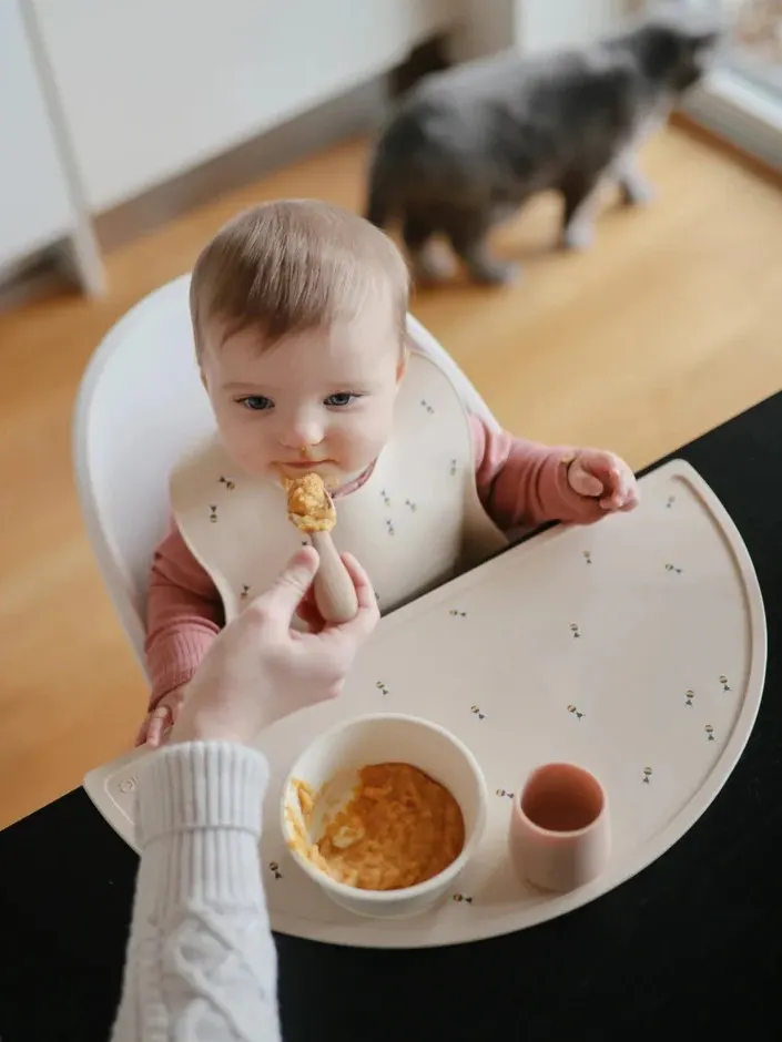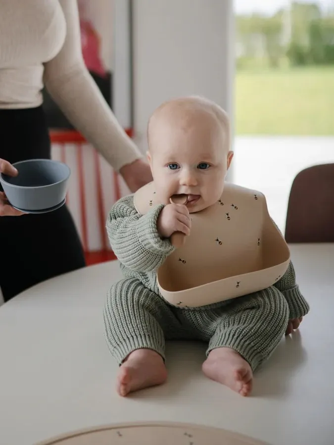 Mushie - śliniak silikonowy z kieszonką Bees