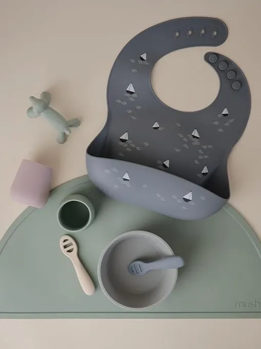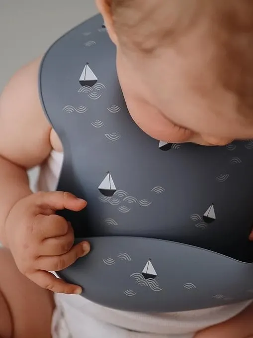 Mushie - śliniak silikonowy z kieszonką Boats