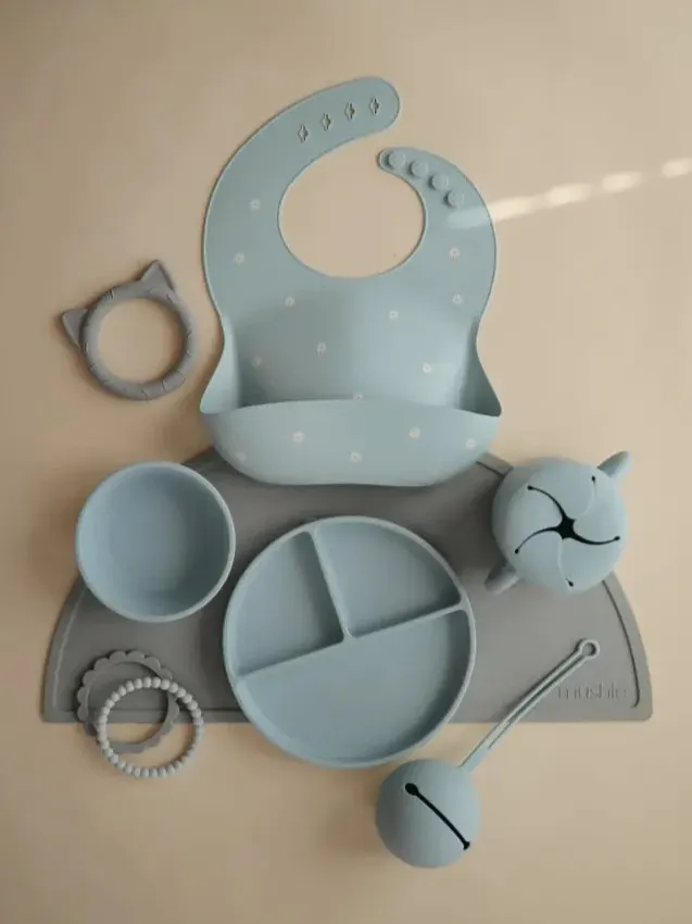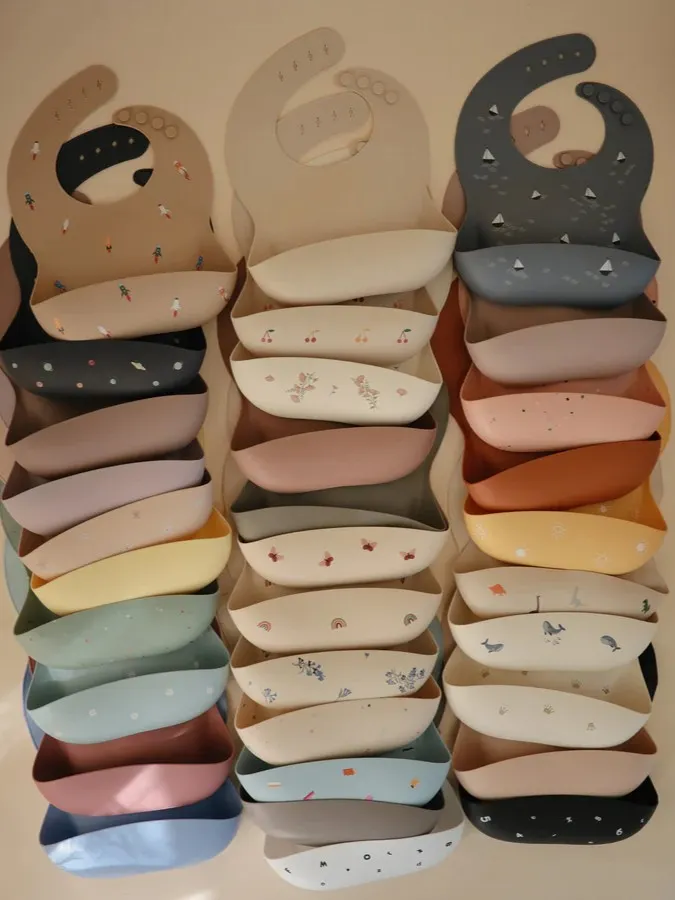 Mushie - śliniak silikonowy z kieszonką White Daisy