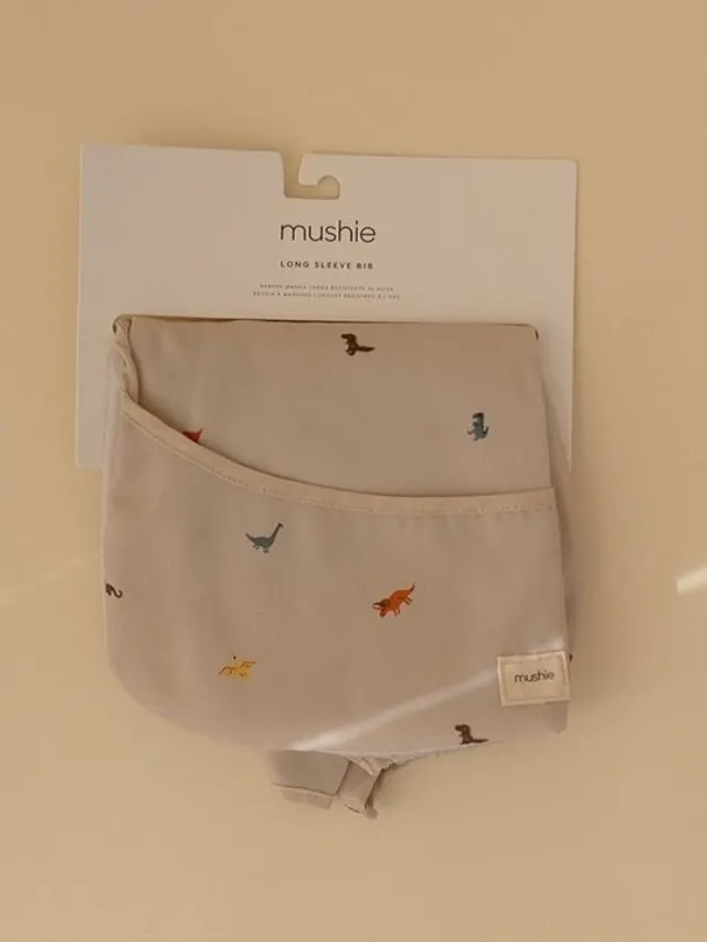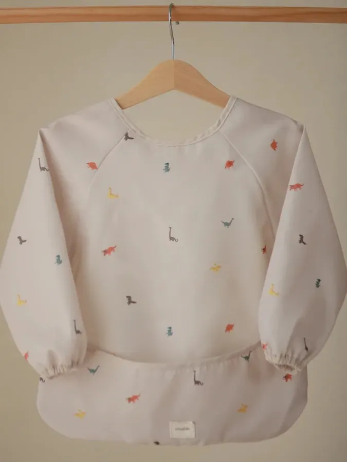 Mushie - śliniak wodoodporny z długim rękawem i kieszonką Dinosaur