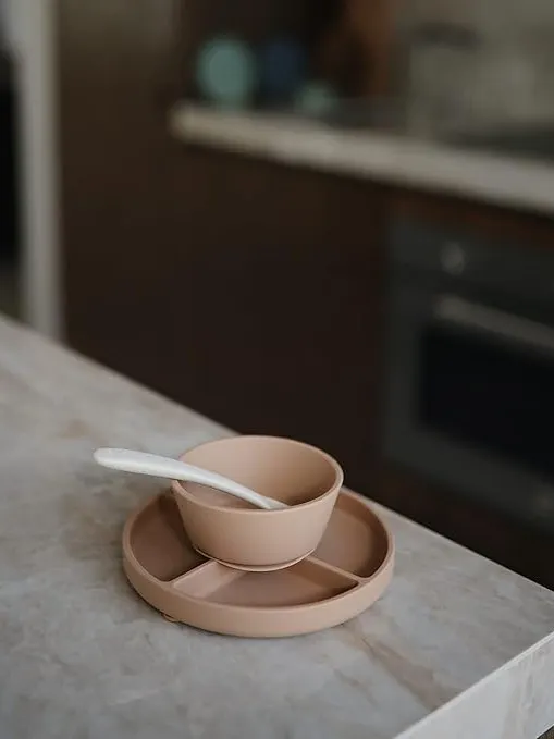 Mushie - talerzyk silikonowy z przyssawką Natural