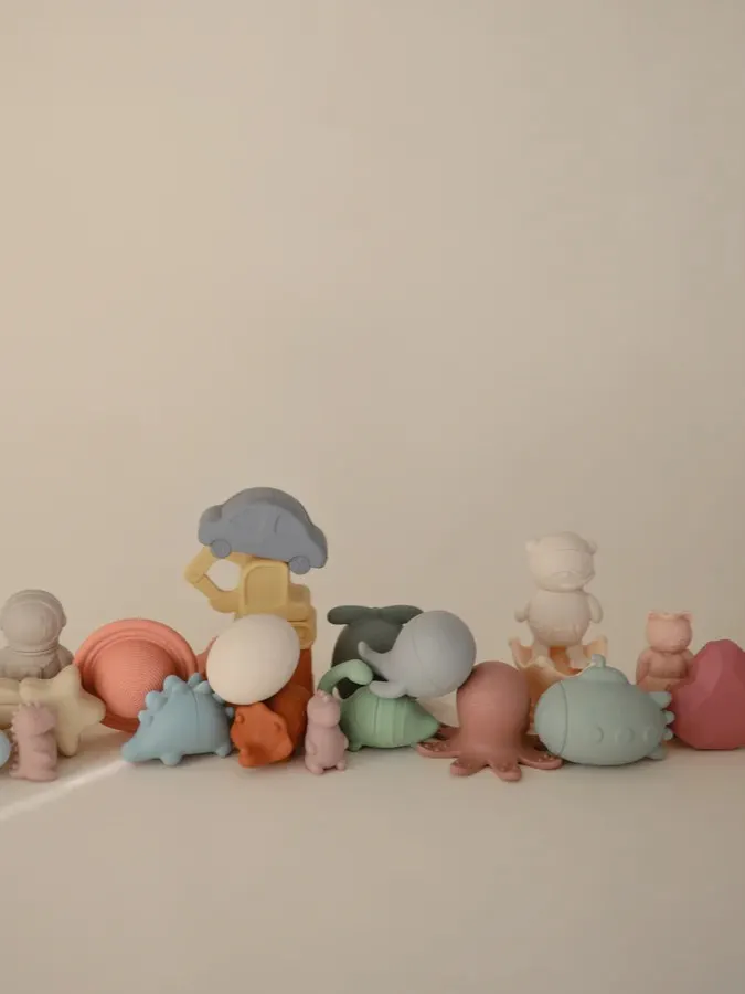 Mushie - zestaw silikonowych zabawek do kąpieli Dino