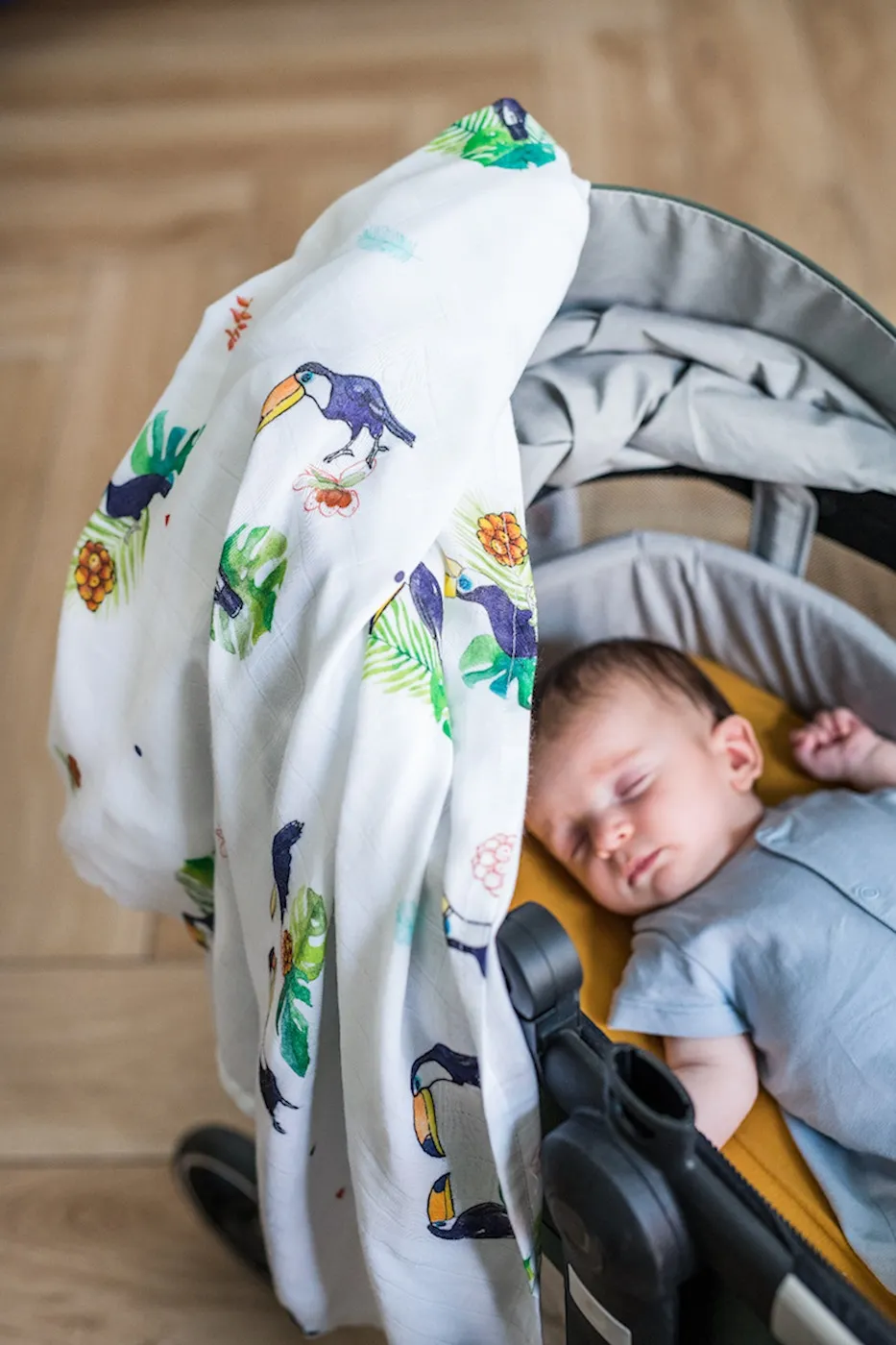 Poofi - pieluszka bambusowa Tropical 73x73 cm Tukany
