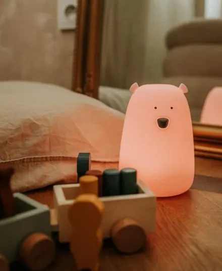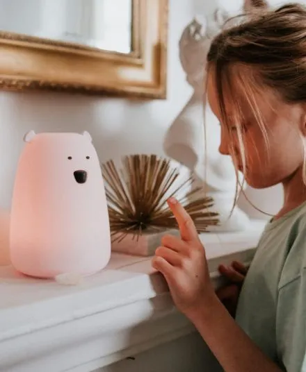 Rabbit & Friends - miś duży lampka silikonowa z pilotem Różowy