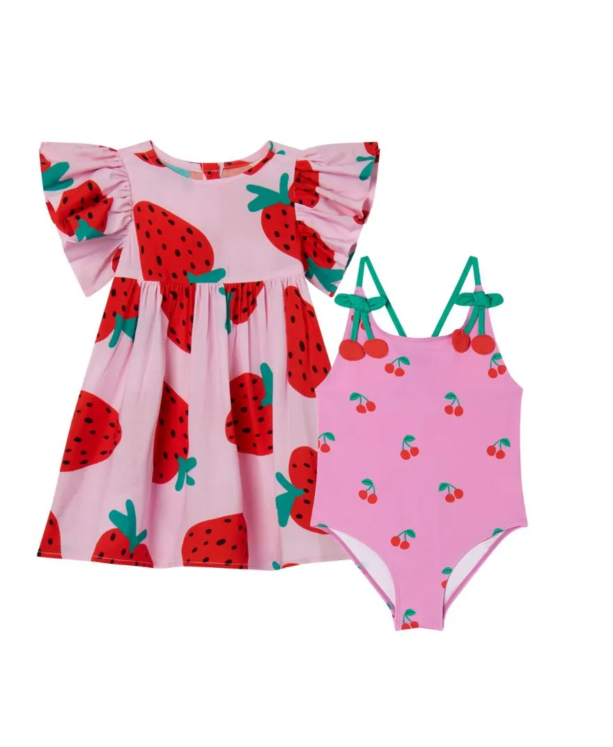 Stella McCartney - sukienka z bloomersami Strawberry Print Dress and Bloomers Set